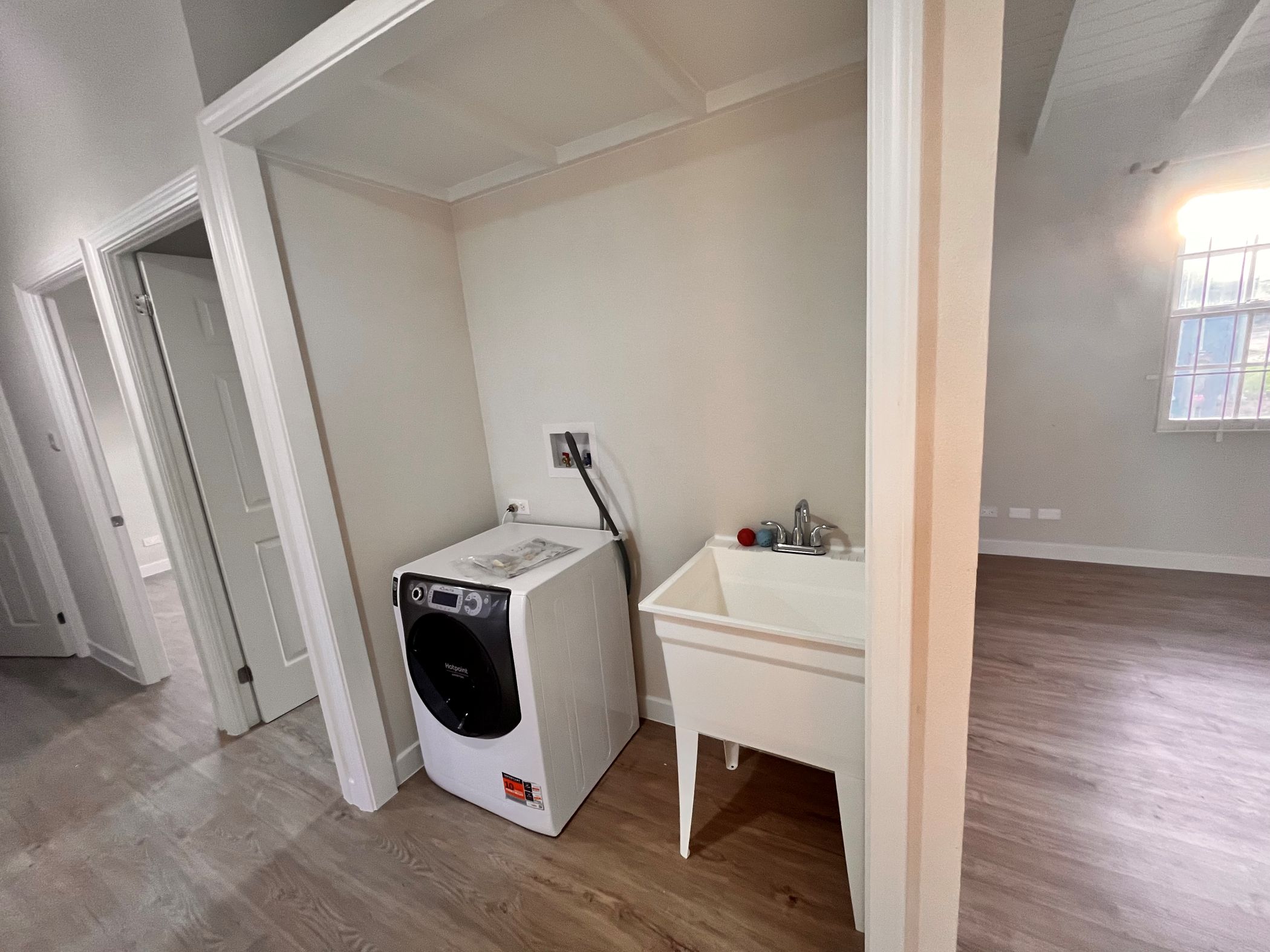 There is a laundry area with an all-in-one washer/dryer located just off the hallway, making laundry days a breeze. Behind the laundry area you will find a dedicated office with a separate entry ideal for remote work or a quiet study area.