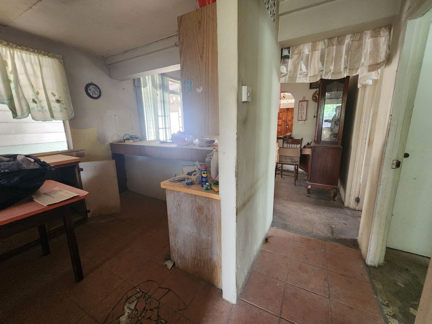 This home features a living and dining area, as well as a large kitchen which can be completely remodeled. The two bedrooms to the front of the home connect to each other and are separated by the first bathroom with shower, the other two bedrooms are to the back of the home, and they also connect and are next to the second bathroom with tub.