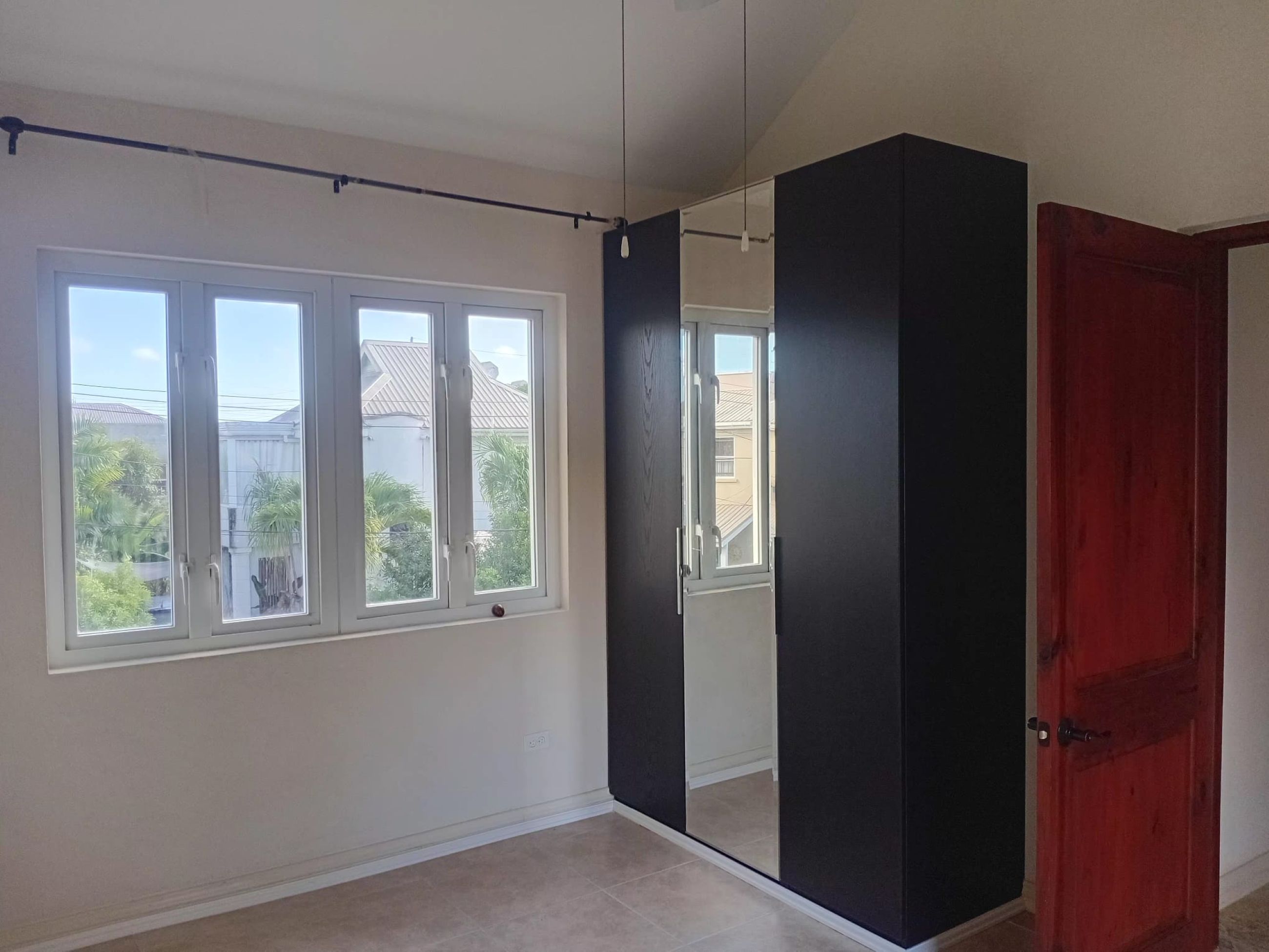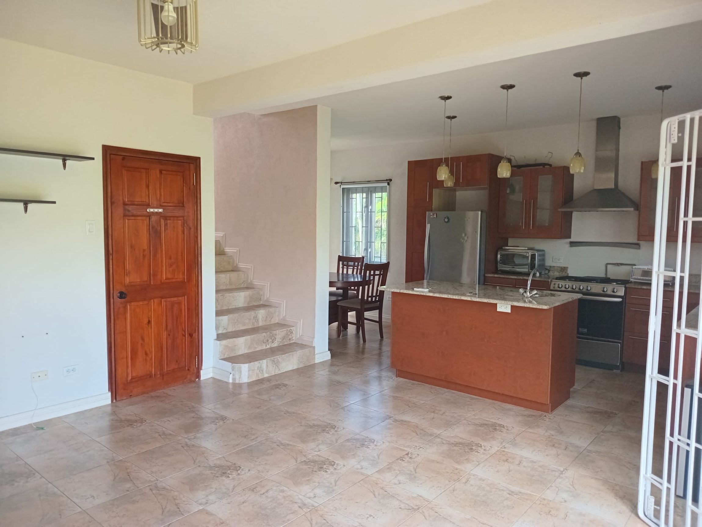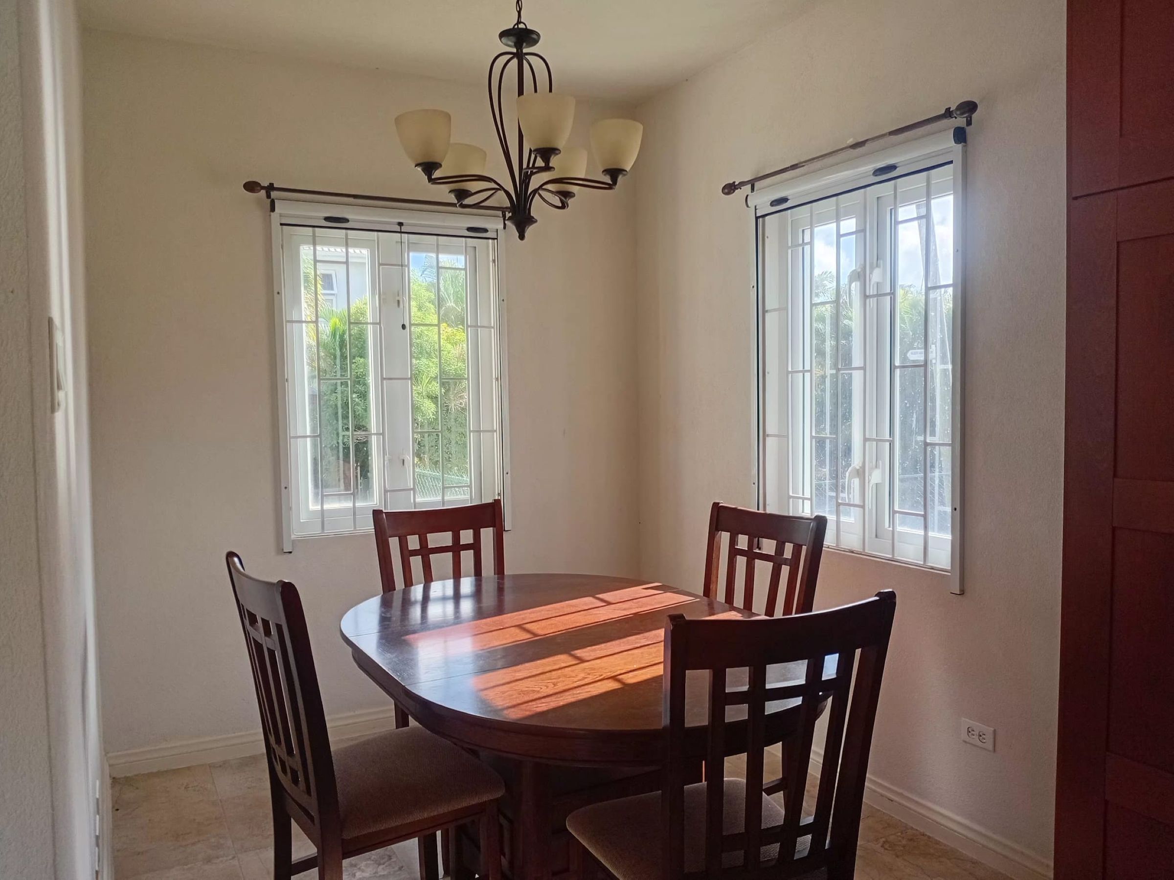 The townhouse sits on a corner lot featuring a wrap-around landscape. A stove, refrigerator, washing machine, dryer and dining table and chairs are included.