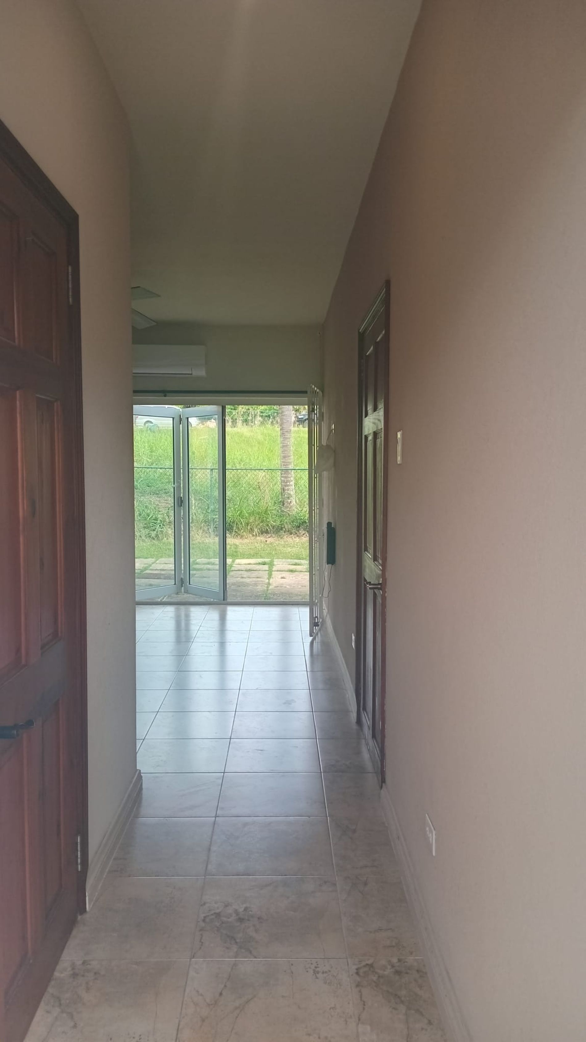 The first floor consists of 3bd/2bth. The primary suite is to the left of the staircase and consists of an ensuite bathroom, full length built-in closets and is air-conditioned. The second bathroom is accessed via the hallway to the right. The second bedroom to the left of the hallway consists of full-length built-in closets and leads to a private patio. The third bedroom consists of full-length built-in closets, air-conditioning and accesses the same private patio.