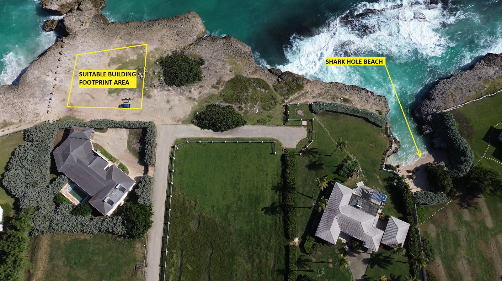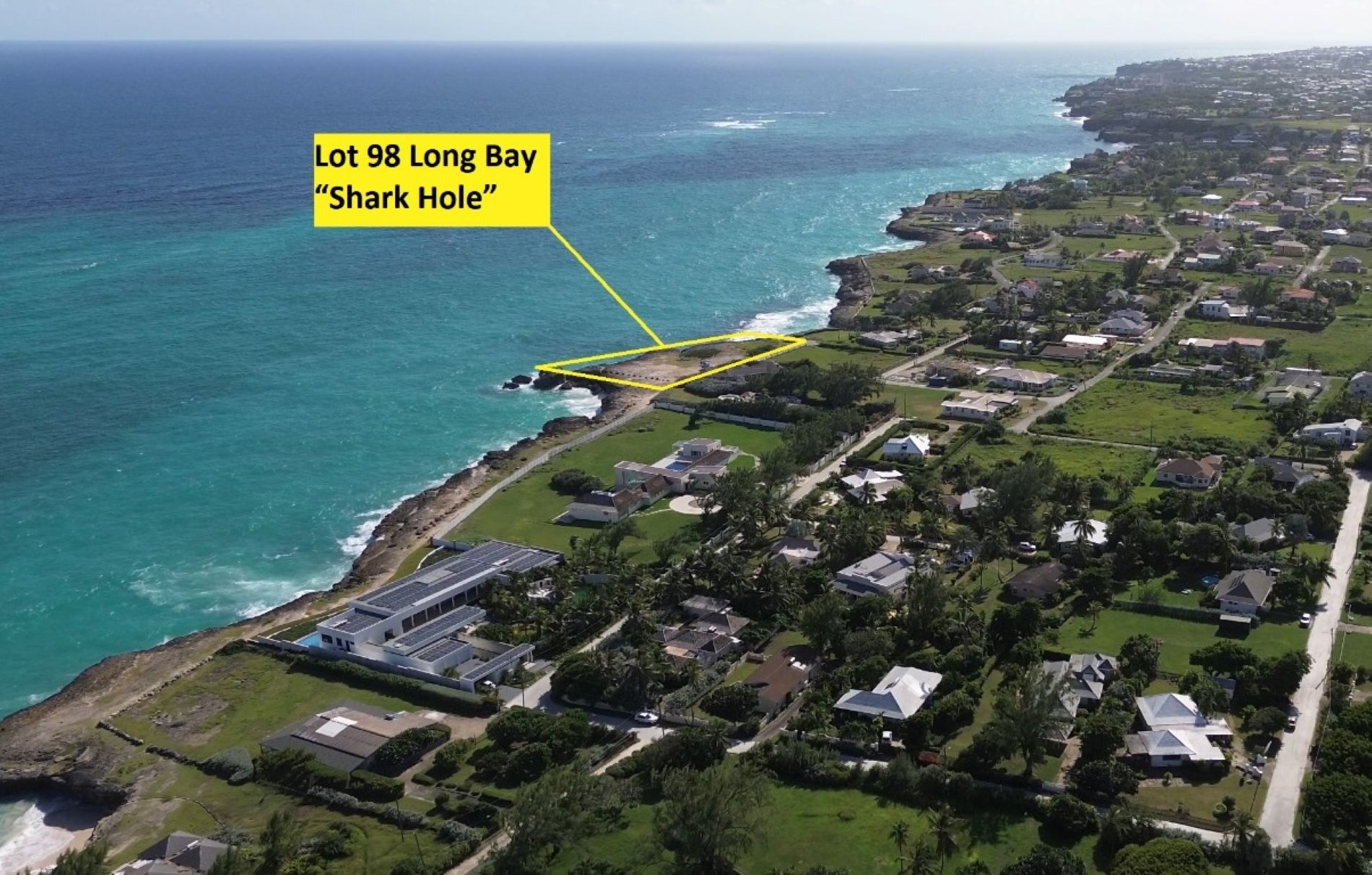 A large cliff-front plot located by Shark Hole in Saint Philip, Barbados, sits in a well-established neighbourhood of Long Bay Development, ideally situated less than 10 minutes from shopping facilities and other amenities in Six Roads. You are also right next door to Shark Hole Beach.
