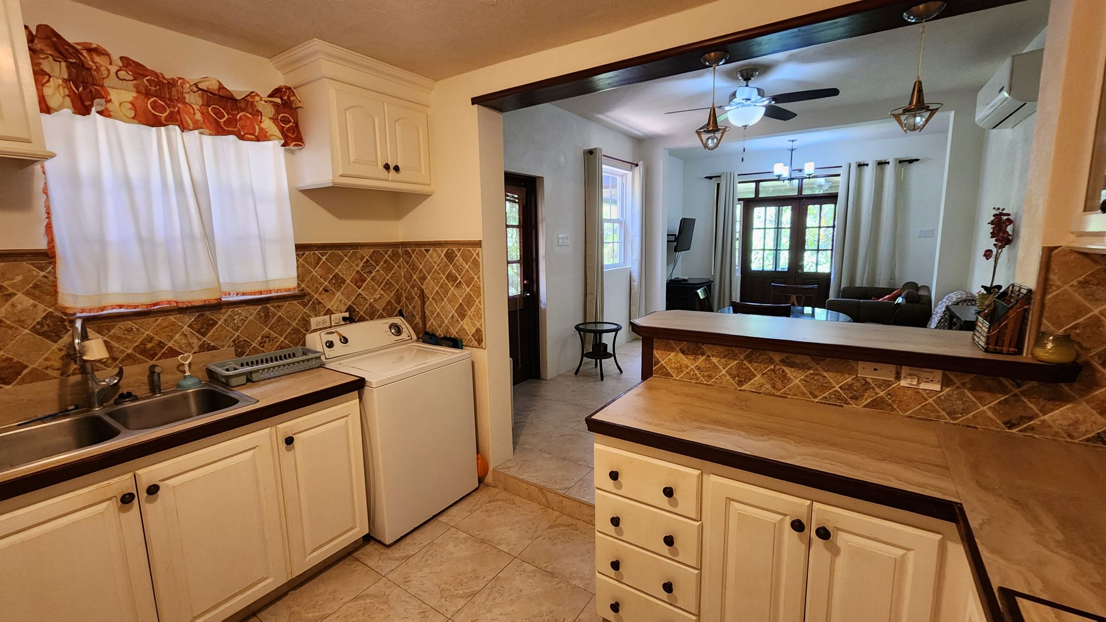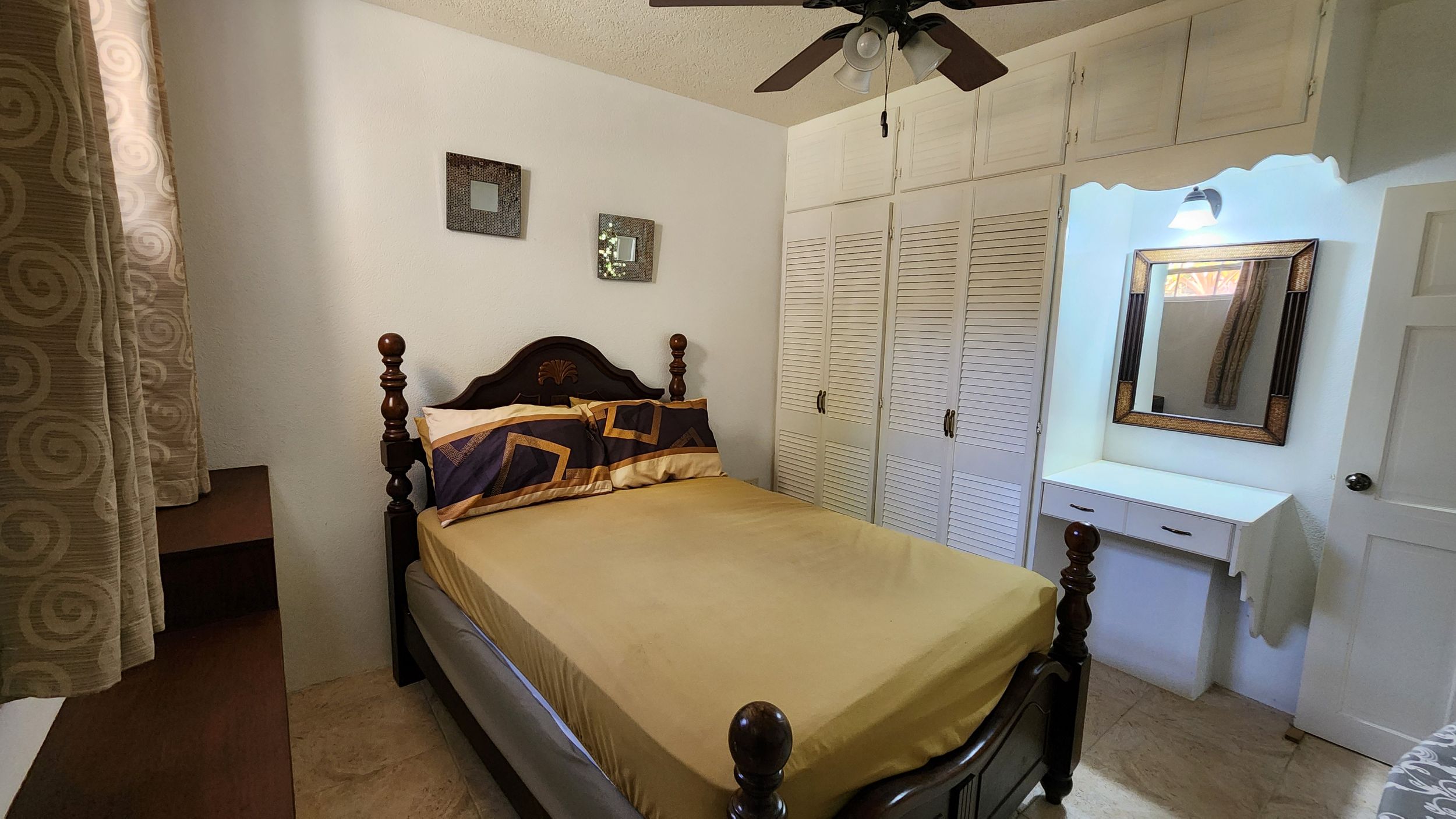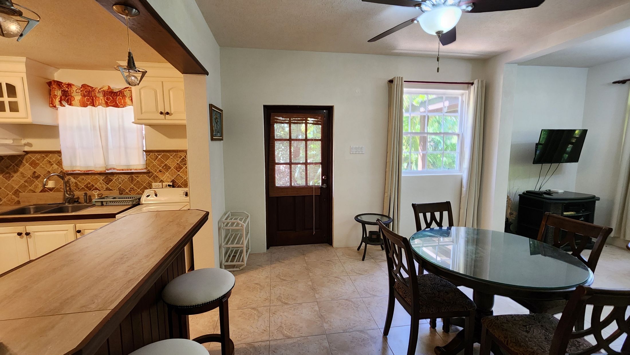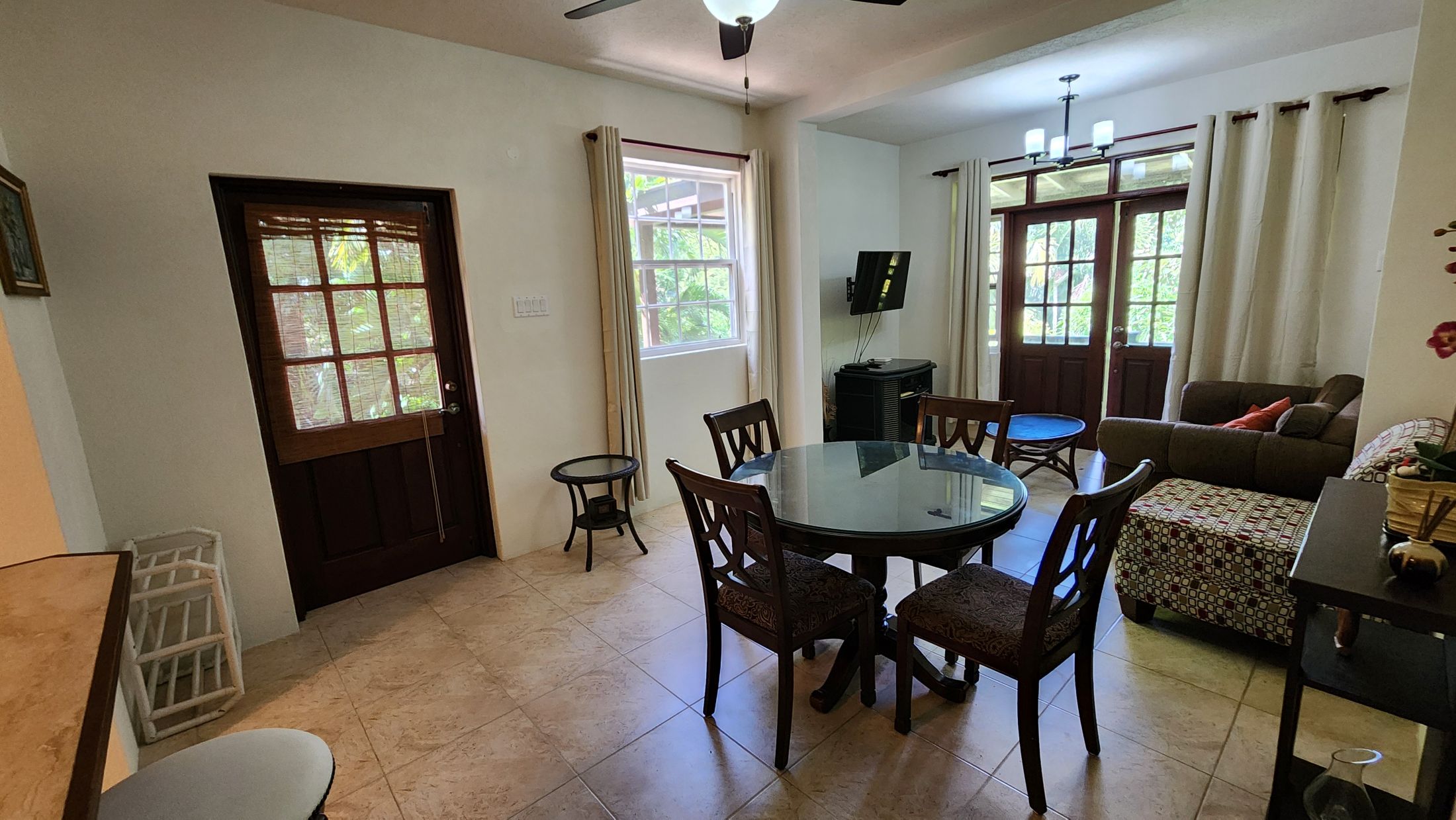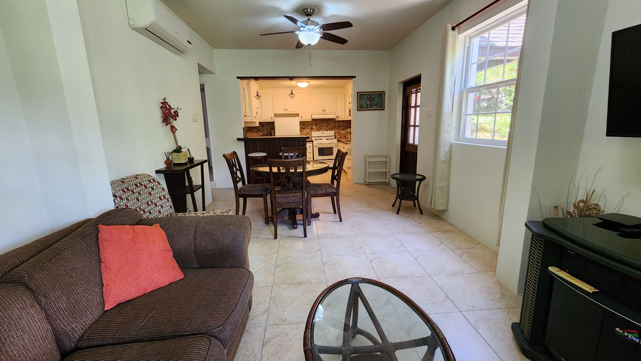 This 2bd/1bth fully furnished apartment is a lower-level dwelling located in a serene development with lush gardens surrounding the property and a stone pathway leading to the entrance of the apartment. Upon entering the apartment, you are greeted by an open plan living and dining area complete with relaxing furniture and lighting as well as a ceiling fan and AC to suit your needs.
